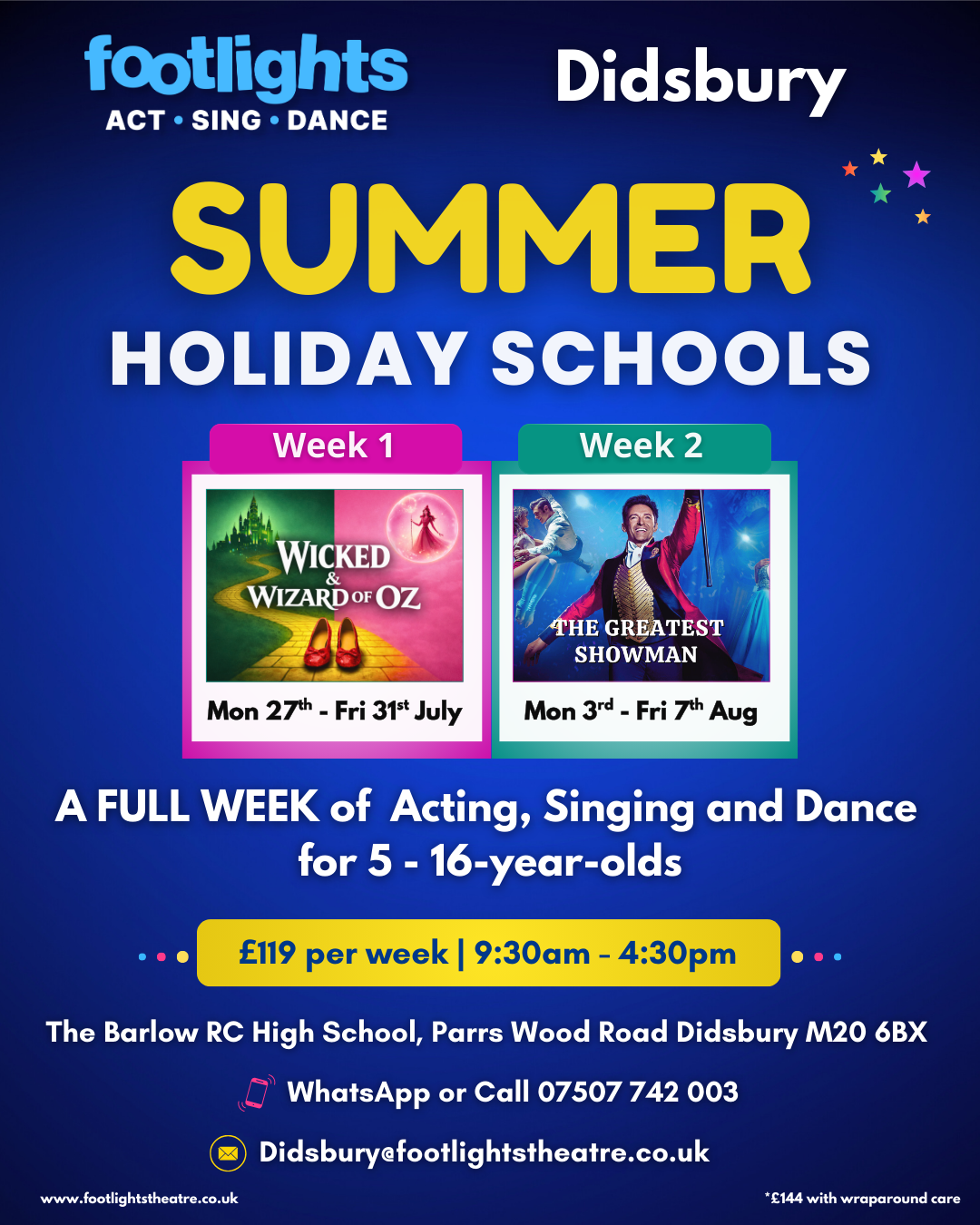 A full week of acting, singing and dance for ages 5–16.