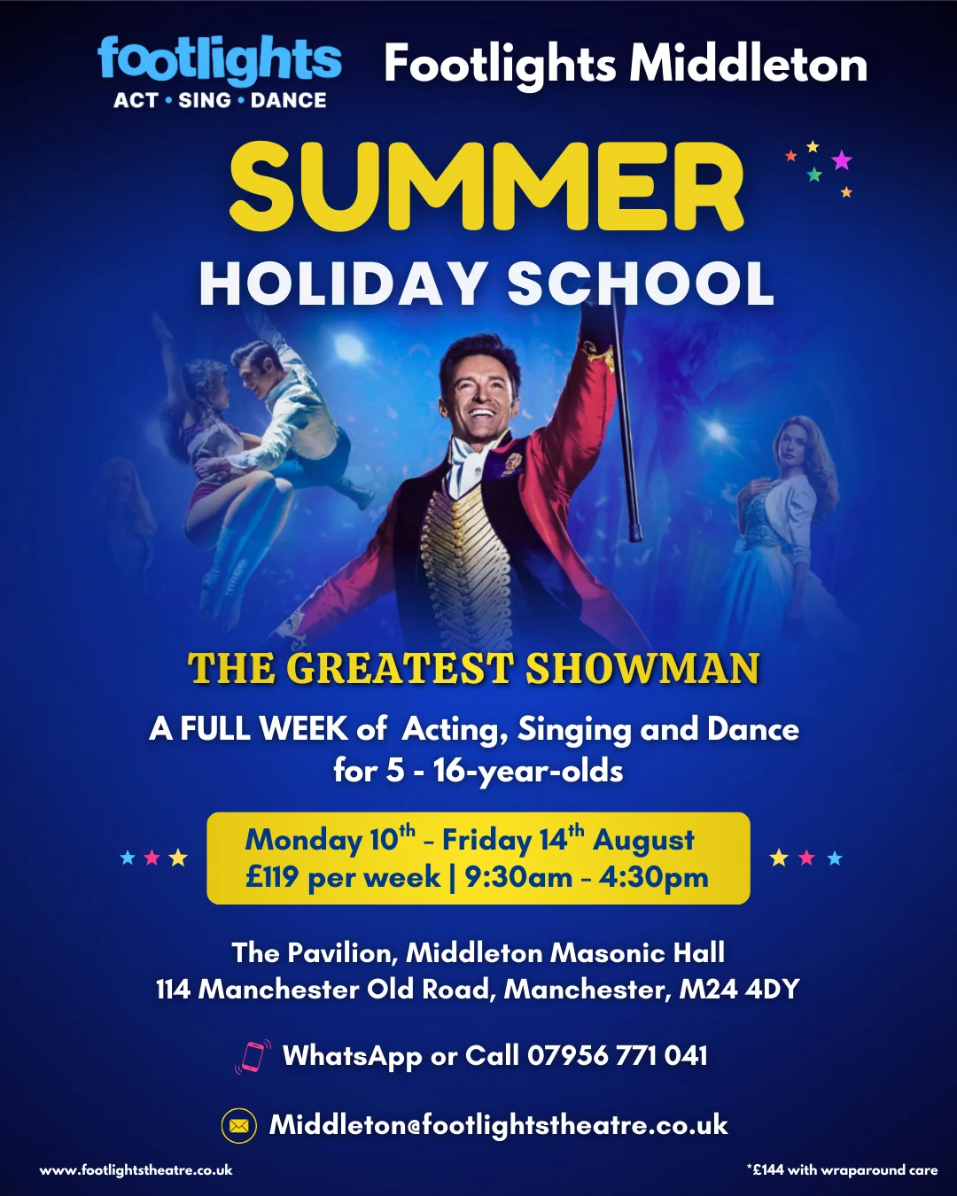 A full week of acting, singing and dance for ages 5–16.